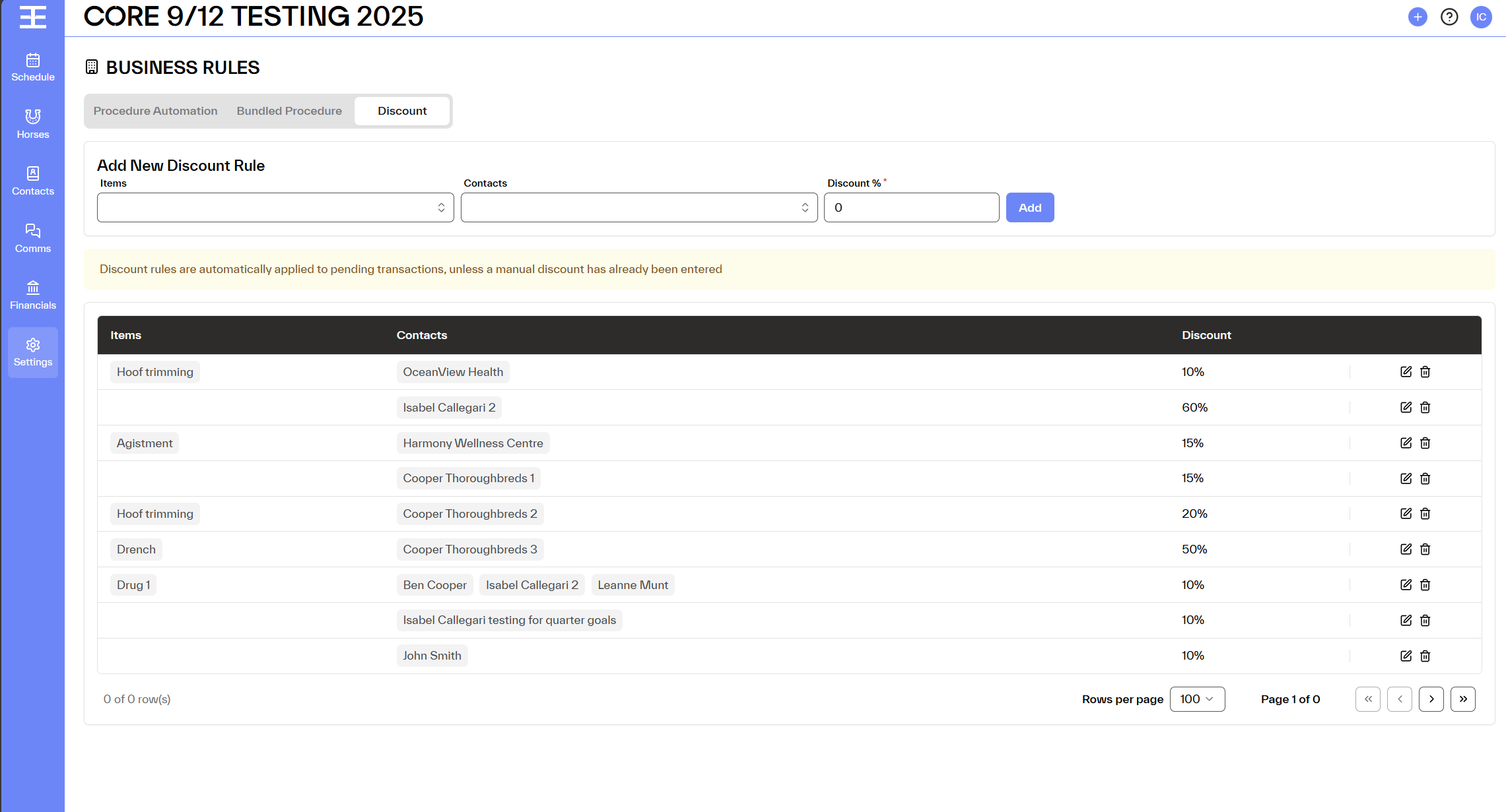 Discount Rules allow admins user to define workspace-wide automatic discounts that are applied consistently across procedures and transactions in EPONA.