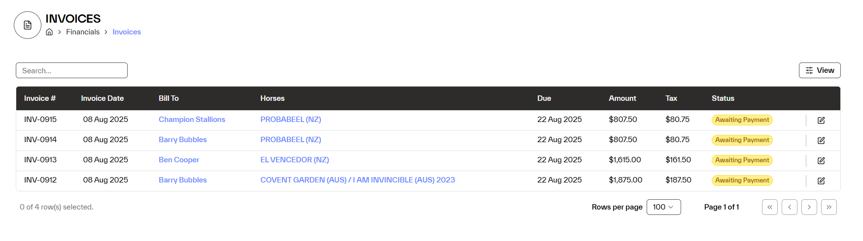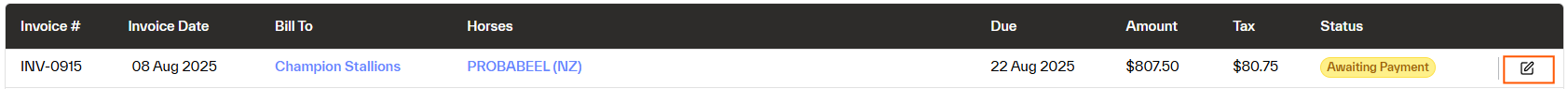 The break down of the invoice can be viewed by selecting the edit option on the view.
