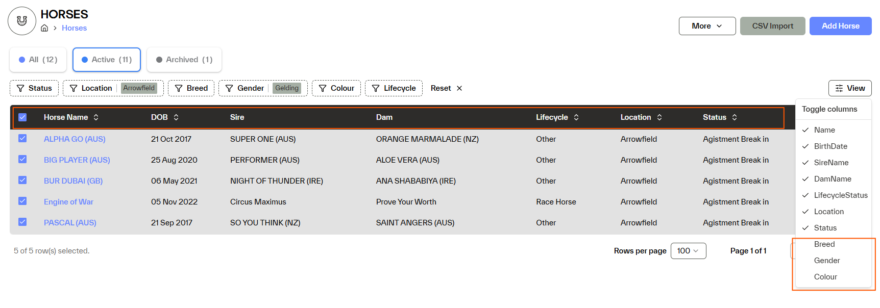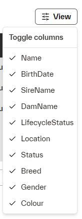 All views have an option to add and remove columns. Select View on the right-hand side of the table.